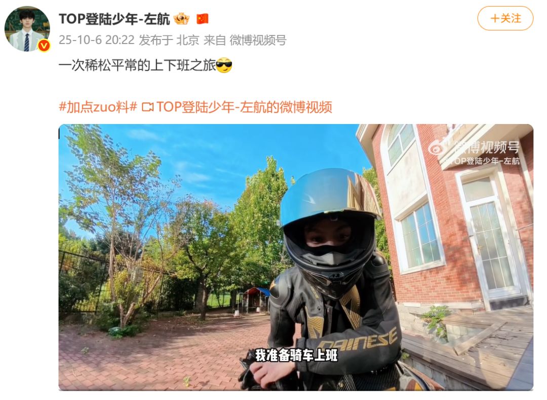 此前网友晒出照片称,艺人左航疑似骑摩托车撞人,引发网友热议。