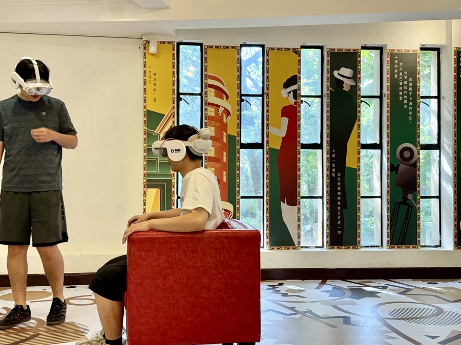 同样结合武康大楼IP开发的VR体验项目《上海1924:武康百年VR奇幻之旅》,票价为两人一组168元,场地可同时容纳4人戴上VR头盔一同探索,长假期间吸引不少亲子游客和三五成群的年轻人结伴体验。