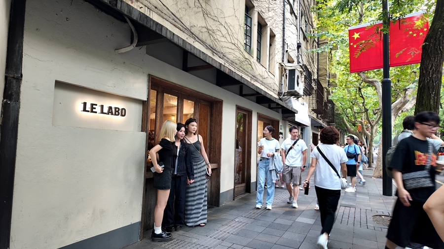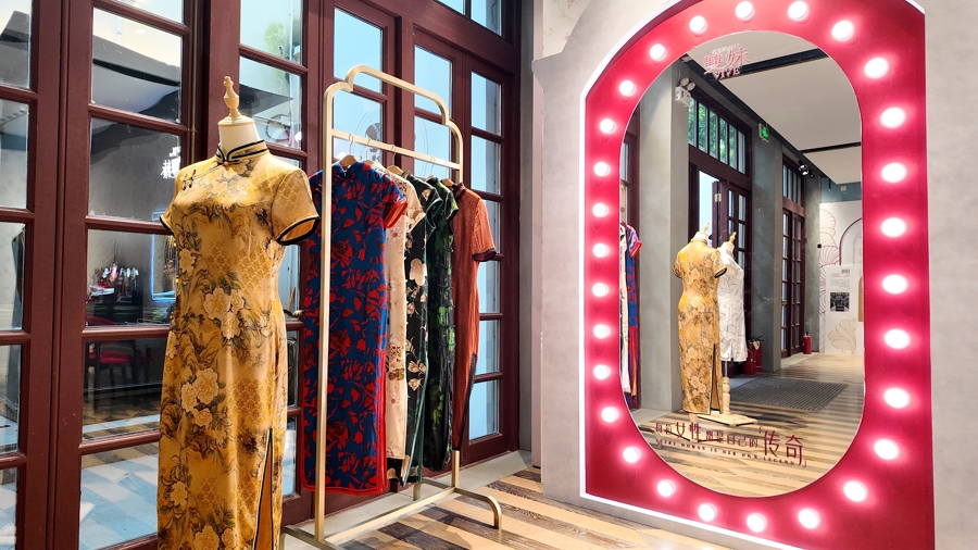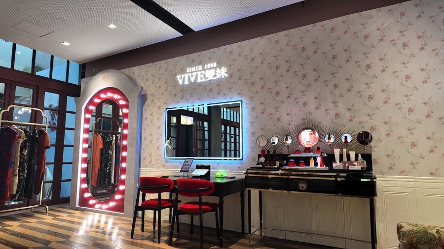 双方合作的第一个“样本”很快出炉——国庆长假至10月中旬,双妹在建业里开设了临街快闪店,店内不仅有双妹最新推出的气垫、与观夏合作推出的护手霜等新品,顾客还能穿上店内准备的旗袍,在灯光璀璨的落地镜前拍照打卡,仿若双妹品牌logo上身的两位优雅的“上海囡囡”。